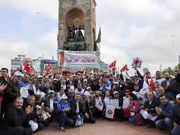 [Burada durup DİSK yönetimine sormak gerekmiyor mu: Haydi kitleyi polis şiddetine kırdırmamak gibi bir kaygınız, katılımı en geniş ölçekte tutmak gibi bir arzunuz ve işçi sınıfının birliğini sağlamak gibi bir hayaliniz var; Taksim çatışmalarına girmekten bu nedenle kaçınıyorsunuz. O hâlde neden, “sınıfın birliği” adına şimdilik daha “ılıman” bir duruşu temsil eder gözüken Türk-İş’li işçilerden uzak duruyor, iki konfederasyonun ortak miting düzenlemesi için çaba sarf etmiyorsunuz? Sorun DİSK’in Türk-İş’ten daha “devrimci” olması mı, yoksa pozisyon/ koltuk kaybı endişesi mi? Sahi CHP’nin gözünün içine bakan tutumunuz, sözleşme yetkisini elinizde bulundurduğunuz CHP’li yerel yönetimlerde tabanın itirazlarına kulak tıkayarak kapalı kapılar ardında bağladığınız uzlaşılarınızla, hepimizin onuru olan tarihiniz dışında, sizi daha “radikal” kılan nedir?]