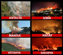 İzmir, Bursa, Uşak, Karabük, Antalya, Elazığ, Maraş, Amed ve Ankara vb başta olmak üzere birçok kentte orman yangınları çıktı, ülke yaniyor.